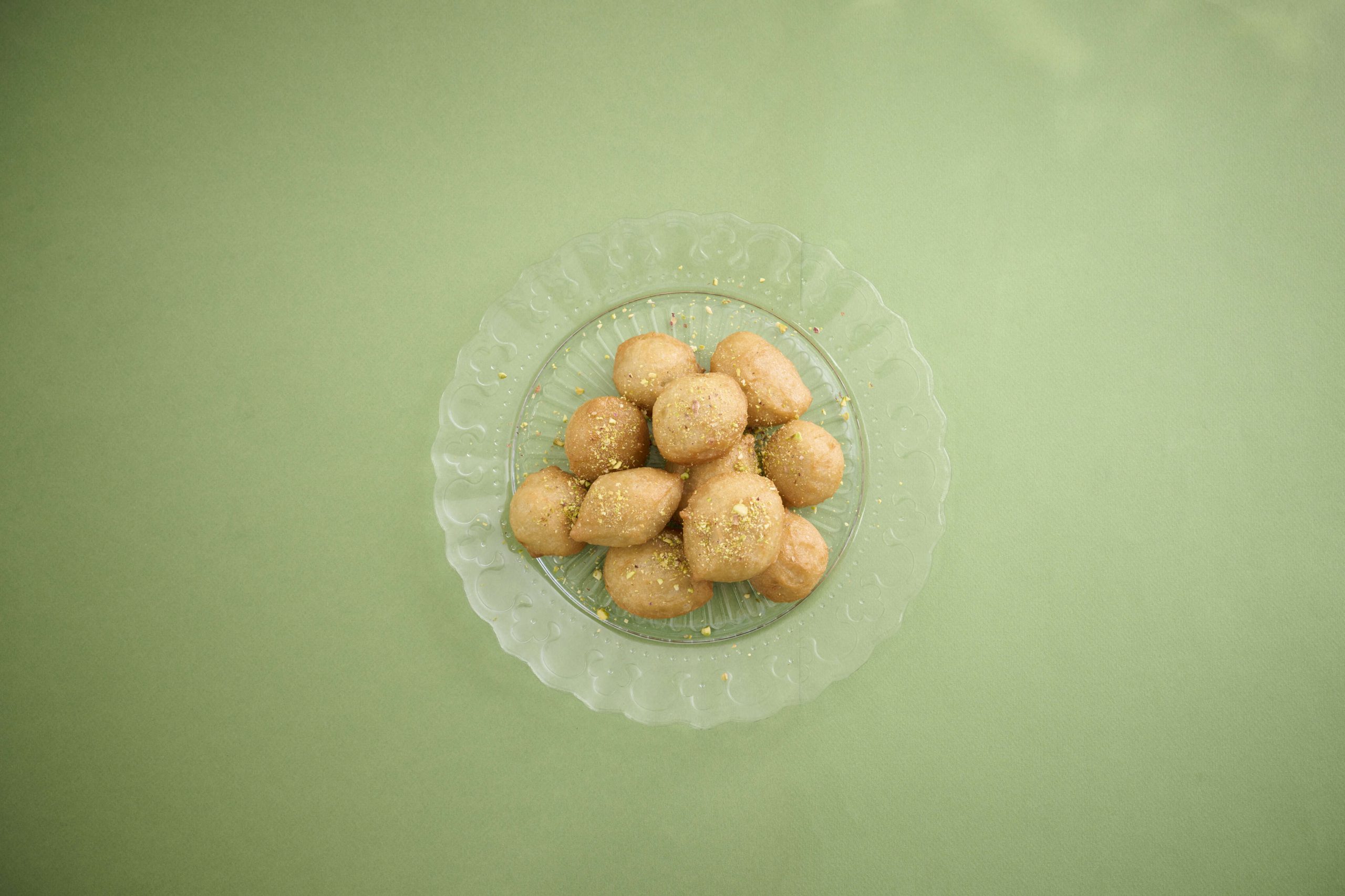 Πόμπες από κολοκάσι με σιρόπι κιούλι και λεμόνι