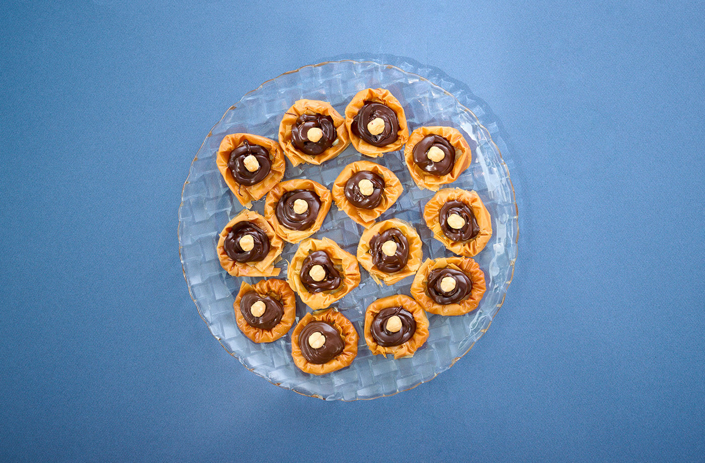 Σιροπιαστές φωλιές μπακλαβά με πραλίνα φουντουκιού