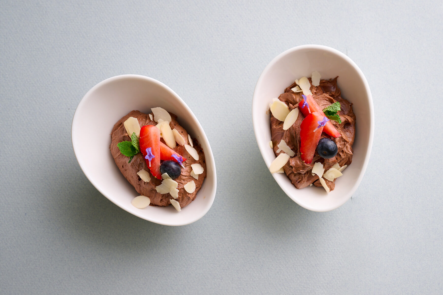 Εύκολο και γρήγορο μους μαύρης σοκολάτας με φρούτα του δάσους