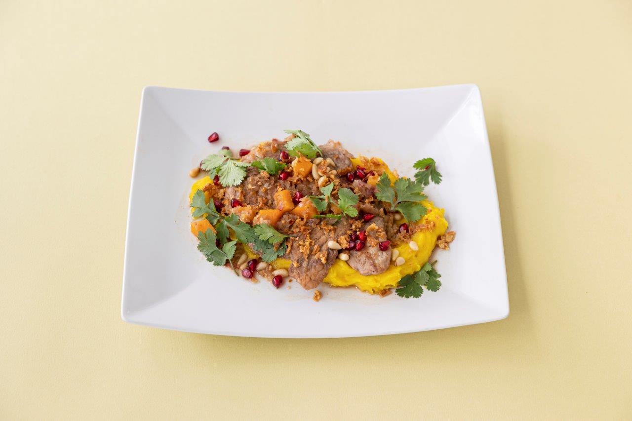 Χοιρινά μπριζολάκια λαιμού με σάλτσα κολοκύθας και γλυκό κόκκινο κρασί