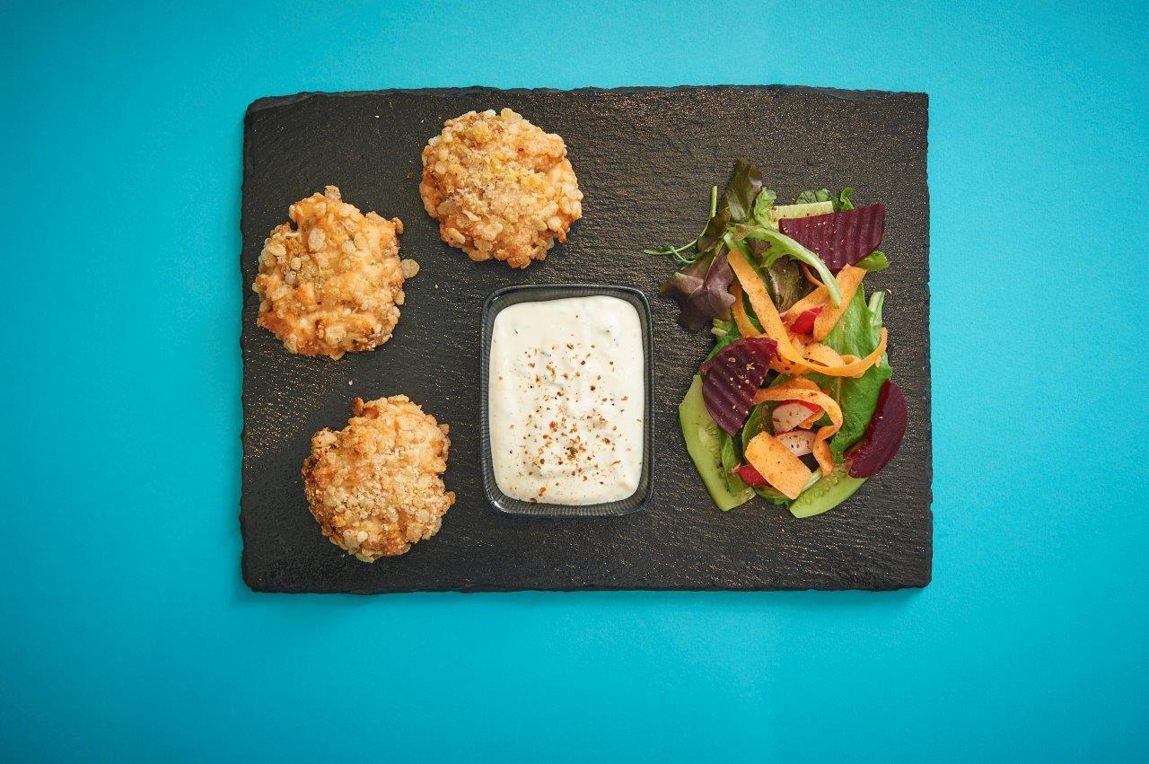 Κροκέτες σολoμού με κιτρόμηλο, κρούστα παρμεζάνας και συνοδευτική σαλάτα